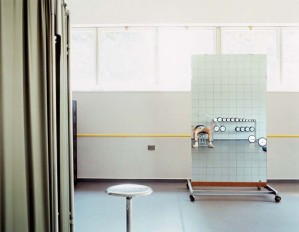 Flamingos take refuge in a bathroom at Miami-Metro Zoo, Sept. 14, 1999 as tropical-storm force winds from Hurricane Floyd approached the Miami area.