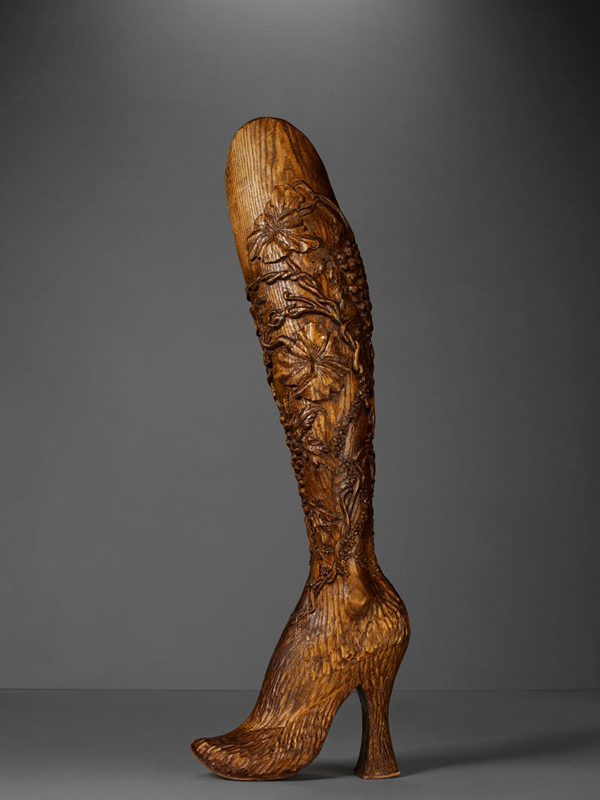 Prosthetic Leg of Carve Elm Wood, Courtesy of Alexander McQueen, 1999.