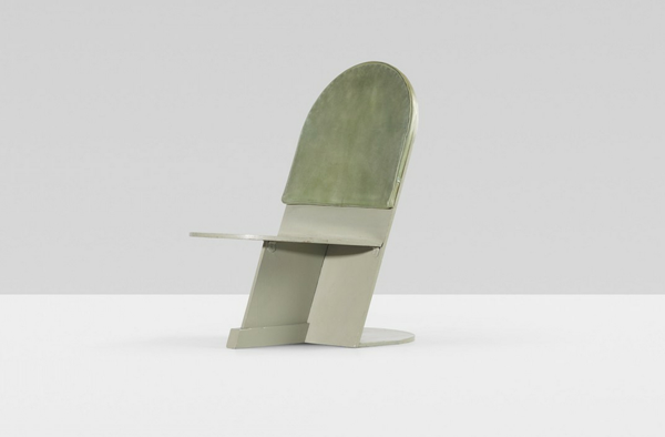 Chair from Wilshire Medical Office, Lacquered Wood, Vinyl, R. M. Schindler, 1945.